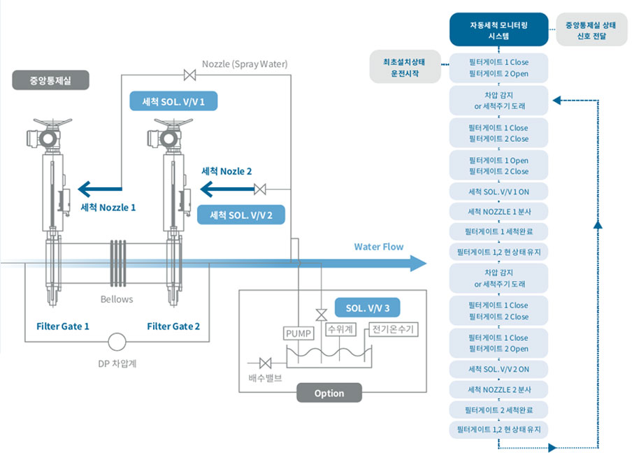 | 특허 | - 제10-2527734호 무단수 게이트형 자동세척 듀얼 필터 정밀여과기